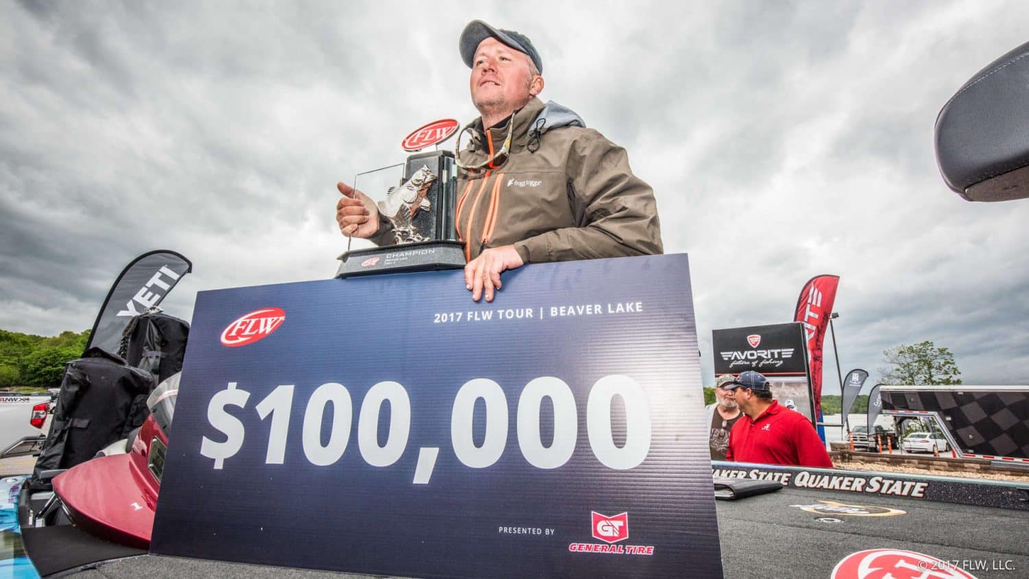 ROGERS, Ark. (April 30, 2017) – Pro Johnny McCombs of Morris, Alabama, weighed in just two bass totaling 5 pounds, 4 ounces Sunday, but it was enough to win the $100,000 prize at the FLW Tour event at Beaver Lake presented by General Tire. McCombs earned the win by 2-pound, 6-ounce margin over second place pro Jason Reyes of Huffman, Texas, in the four-day event hosted by Visit Rogers, that featured a field of 161 of the world’s best bass-fishing professionals competing in one of the most challenging tournaments in recent FLW history.