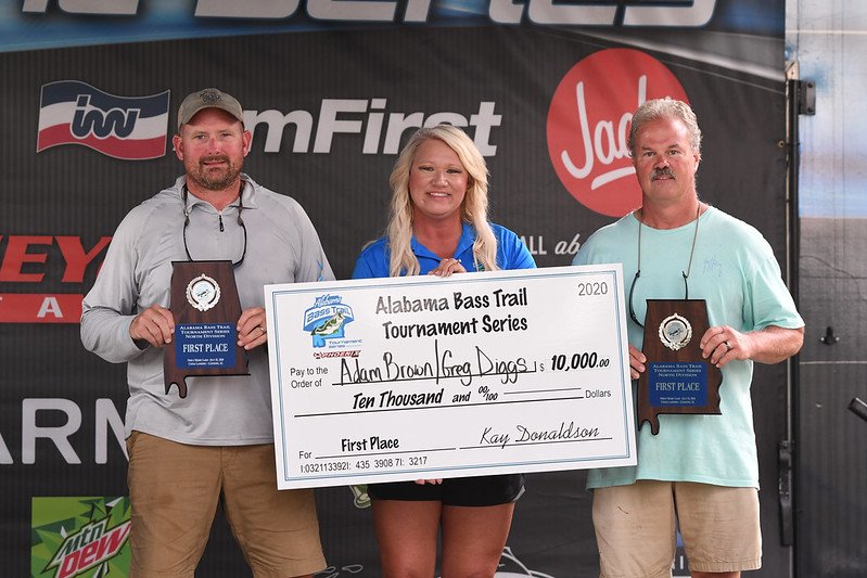 July 25 – Gadsden, AL– The fourth stop of the Alabama Bass Trail North Division at Neely Henry Lake was an exciting win for the team of Adam Brown and Greg Diggs. The team planned to fish skinny water and ended up winning by the skinniest of margins. With 15.67 pounds of Neely Henry bass, they took home the $10,000 prize and qualified for the ABT Championship.