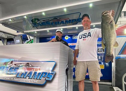 Edward Dustin of Fredericksburg, Virginia, caught the largest bass in the Co-angler Division, a fish weighing in at 4 pounds 4 ounces. The catch earned him the day’s Co-angler Big Bass award of $307.