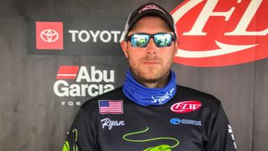 He targeted rockpiles and rock breaks in 17 to 21 feet and caught all of his fish on a drop shot with a Berkley Flat Worm in the natural shad color. Uncertain of how long it would take him to run back through the rough water to the weigh-in site, Mueller left the lake around 1:45 p.m. and ended up with time to fish the river.