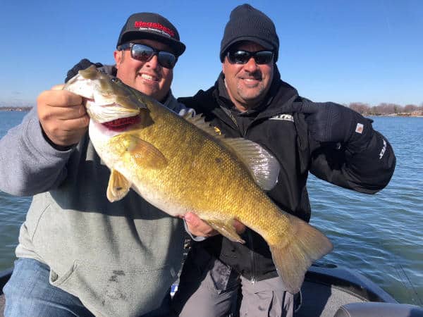Strader said his fish were probably postspawners. Targeting likely staging areas with vertical falls was key.