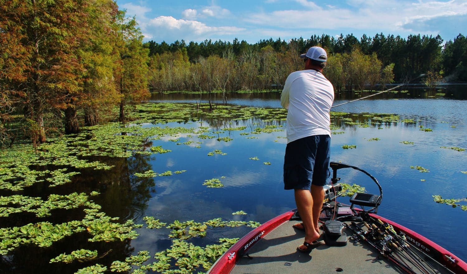 Various places it has worked for me include the aforementioned pad fields of Toho, empty, shallow, hard-bottomed ledges including those found at Bienville Plantation, over deep, open, featureless strip pits that bottom out at 20 feet, potholes in Okeechobee eel grass fields, current rippled waters of the St Johns River, laydowns and overhanging willows on Clarks Hill Lake, canals and boat trails on Orange Lake. This tactic works everywhere water and bass coexist.