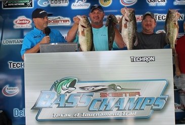 | After dodging a bullet with the first tropical storm of the season making its way through East Texas, William Flournoy and James Chumley hit a bullseye fishing the 3rd Annual Techron TX Shootout on Sam Rayburn, cashing in over $60K! Nearly 300 teams participated in this world’s largest one day team event hosted by Bass Champs that paid back over $137,000 in cash and prizes. It may have been the recent weather having the bass all stirred up, giving way to the tremendous fish seen at the scales.