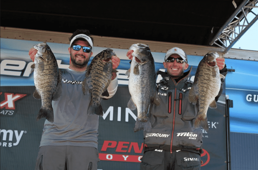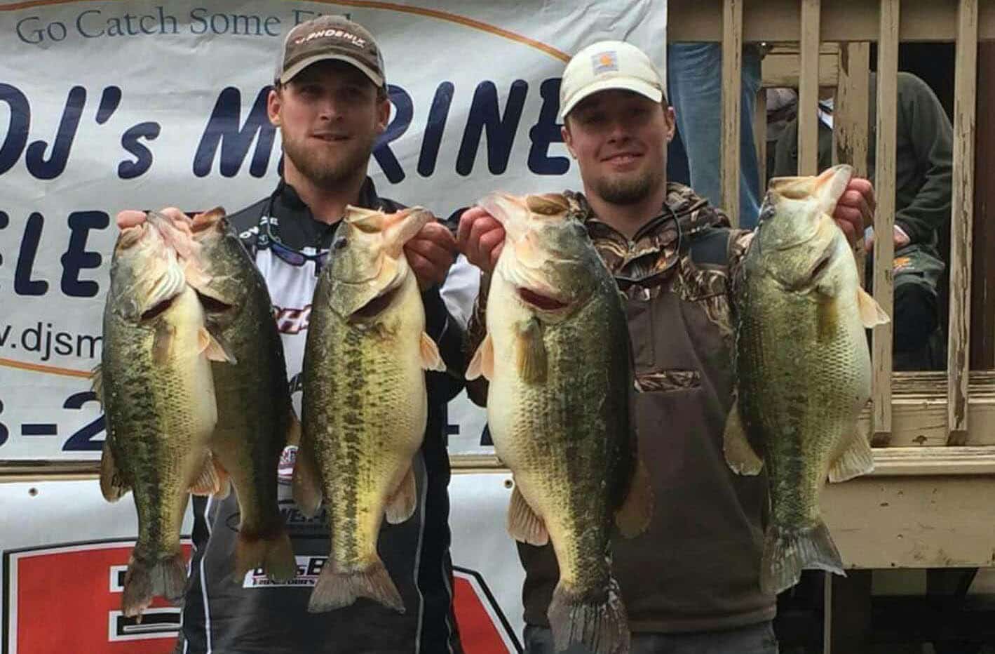 CHATTANOOGA (WRCB) - The team of Haden Lamb and Trevor Porter caught a 5 bass limit weighing a record breaking weight of 39.63 pounds crushing the field of 184 anglers to win first place and $2,000.00 in the D.J Electronics February C.B.A. Bass Tournament. This tournament was held Saturday, February 18th out of Chester Frost Boat Ramp.