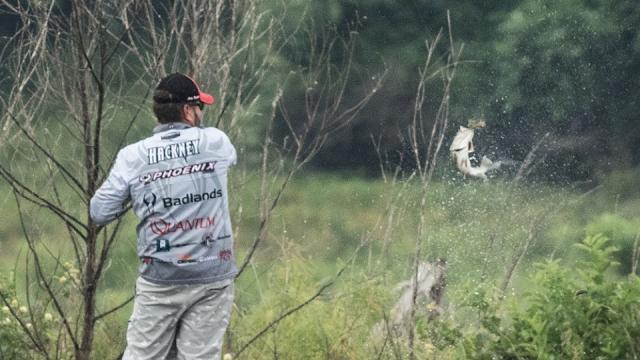 Local angler Andrew Hammond took advantage of a one-hour spurt in the middle of the day to catch a three-fish limit weighing 11-3 to move into first place in the co-angler division. The 38-year-old sales rep for a paint coating company lamented losing a fish that would have padded his lead.