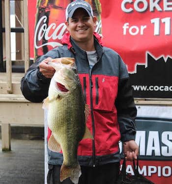 2nd place finisher Jason Christie didn’t catch his first keeper until 9:30 a.m. on Monday, when he boated a 7 pound, 12 ounce largemouth. By then, his 5 pound lead had evaporated and he was trailing the on-the-water leader by more than 18 pounds.