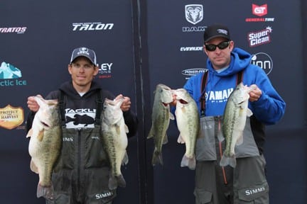 Thonrton and Ross, both of Tibbie, Ala. weighed in five largemouth bass that tipped the scales at 15.24 pounds to clinch the $10,000 first prize.