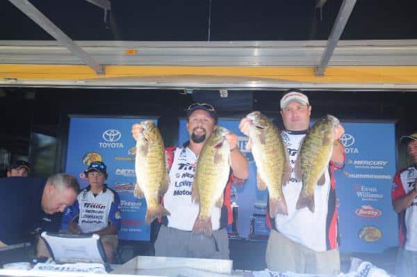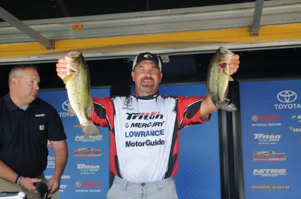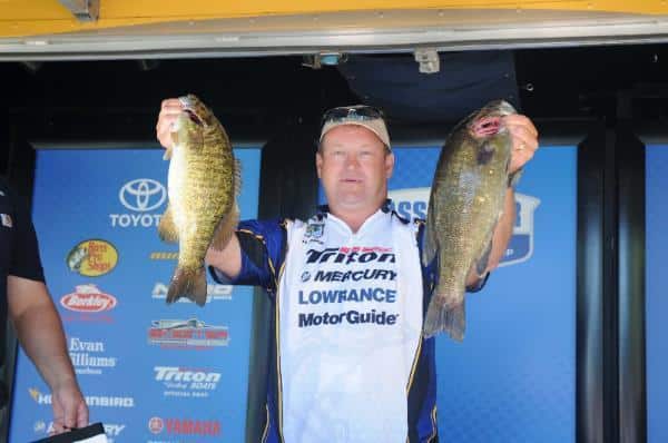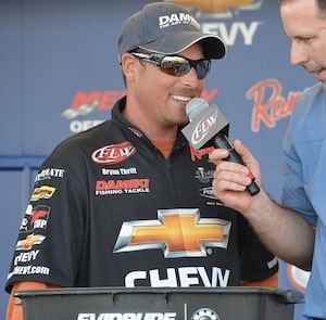 Chevy Pro Bryan Thrift rides a 4 ounce lead over Randall Tharp. All of Thrift’s fish that weighed over 4 pounds have come from one point in Pool 5. He plans to stop there in the morning. He also plans to spend some time in Pool 4. “I fished there for 25 minutes today, caught a two-pounder and came back,” said Thrift.
