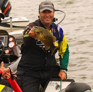 He located schools of roaming smallmouth with a swimbait. Once he found fish he worked the school over with a drop shot. One of his better baits was the Gulp! Alive! Jerk Minnow. “It’s a lot more buoyant than a lot of other twitch baits and it stands out straighter on the hook. That was a big key. If it laid down you didn’t get bit so it took that type of a bait to get a strike.”