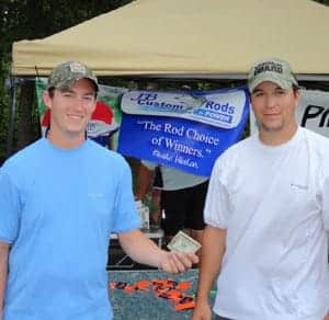 Only one team could win and it was the team of Ken Wall of Asheboro & Ben Cannon of Apex! They fished the area between Hwy. 50 bridge and Cheek Road bridge and came in with only 4 bass, but they weighed 18.08 pounds, enough to take home the cash! They won the 1st place money along with 1st place Big Fish, 1st place TWT & also collected the 2 JB Custom Rods Points Champions Award, worth $250 each. All total, they won