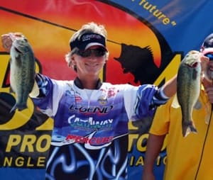 She was the Lady Bass Anglers 2011 Angler of the Year and she is right back in the race this year, trailing another top lady angler, Kim Bain Moore, by only 15 points going into the final qualifying tournament of 2012.