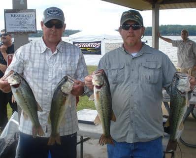 Ed Wilkerson and Jason Smith haul in 15.22 on a 98 degree day down on Lake Eufaula and win the 11th Annual Lee King Benifit Bass Tournament