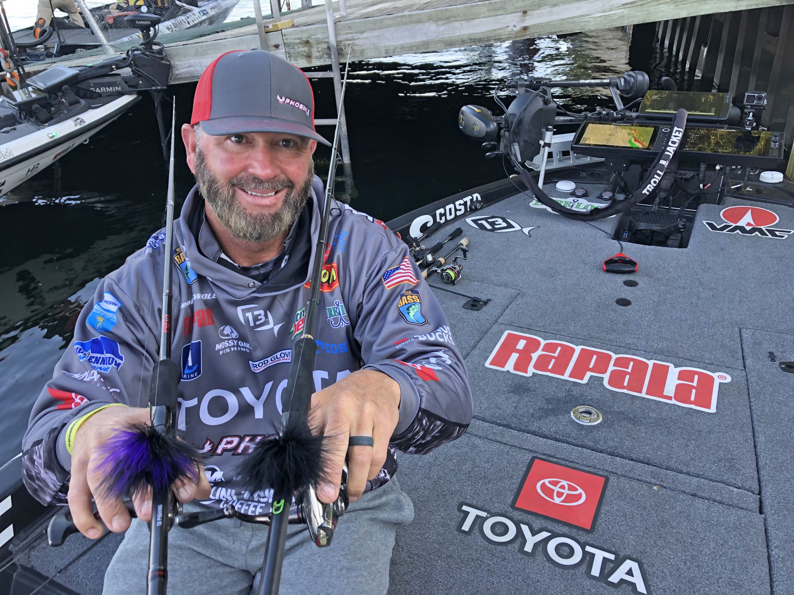 “Oh, the purple one is for guys like me with Attention Deficit Disorder. When I’ve had all I can stand of the black one, I switch to purple to keep my head in the game,” laughed bass fishing’s funniest angler.