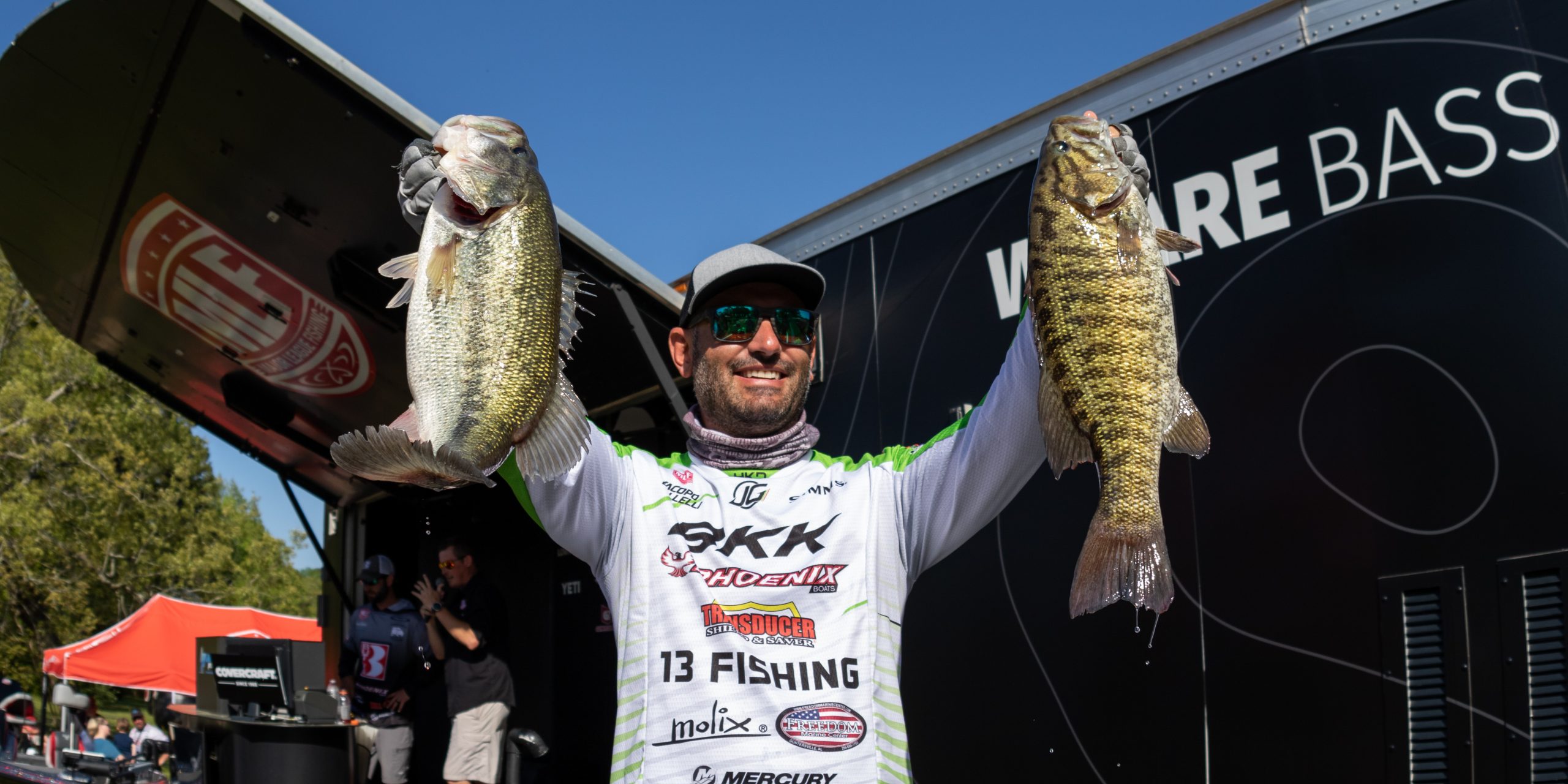 Steven Bale of Grove, Oklahoma won the Strike King Co-angler Division Saturday with a three-day total of 13 bass weighing 35 pounds, 9 ounces. Bale took home the top prize package of a new Phoenix 518 Pro bass boat with a 115-horsepower Mercury outboard motor.