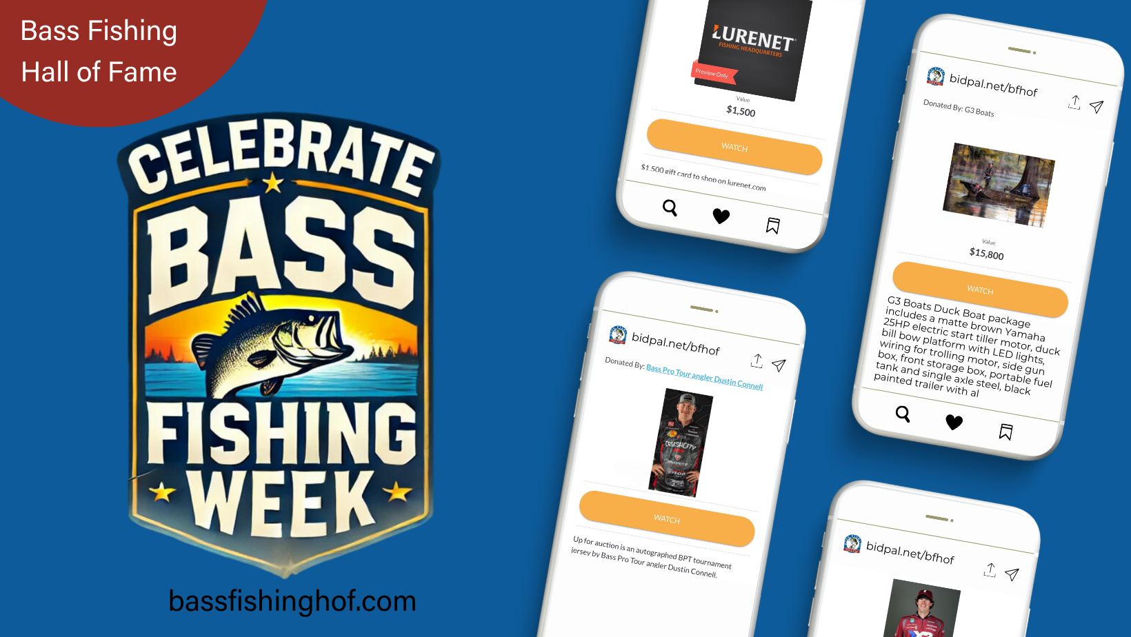 Bidding for the Celebrate Bass Fishing online auction, presented by Major League Fishing, begins on Sept. 20 and concludes Sept. 26. View items and participate in the bidding at https://one.bidpal.net/bfhof/