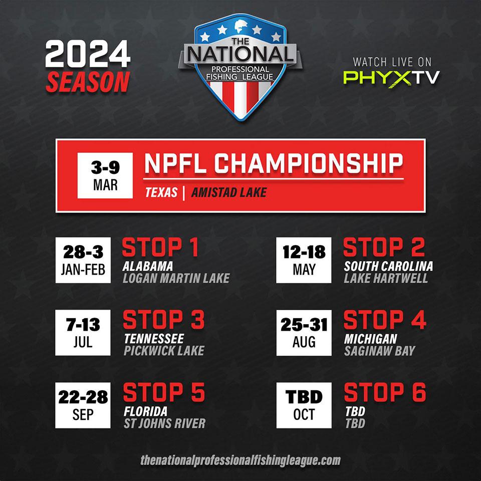 THE NATIONAL PROFESSIONAL FISHING LEAGUE ANNOUNCES 2024 SCHEDULE