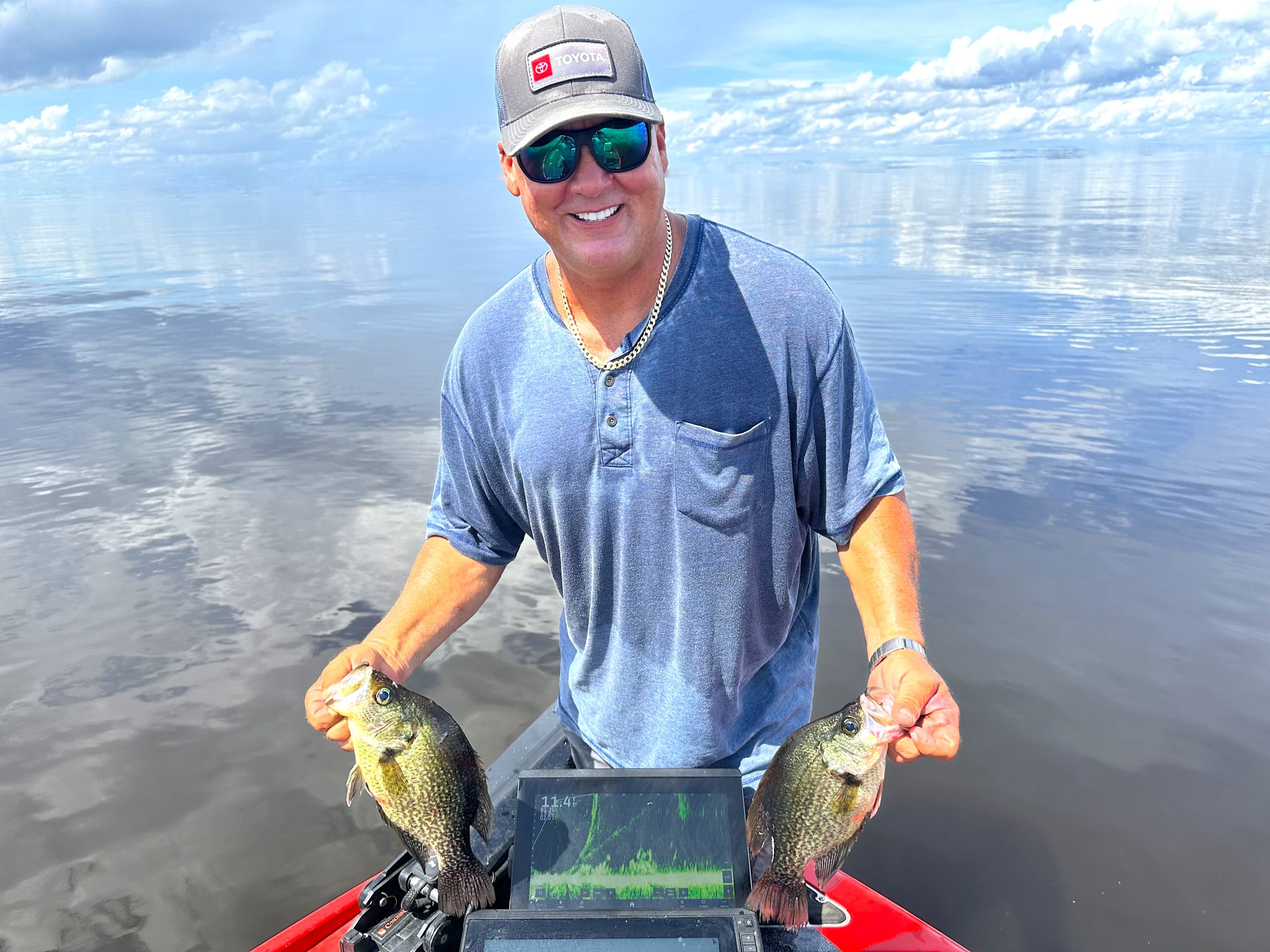 Team Toyota’s Terry “Big Show” Scroggins believes that in order to keep his illustrious pro career of two decades competitive, having a professor’s level of knowledge regarding forward-facing sonar is imperative. So, he’s been utilizing dozens of crappie fishing trips on his home waters of the St. Johns River to dial-in his understanding of “FFS” with great precision.
