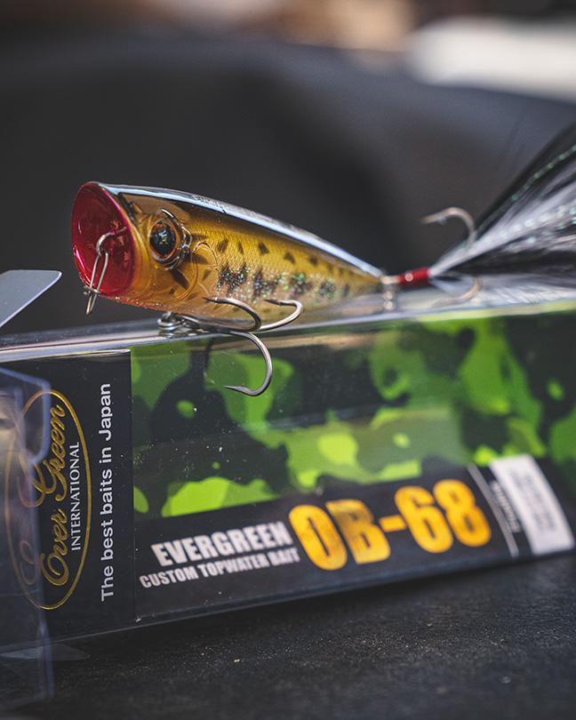 “That makes 9 patterns in all for this super popper,” says Marc Mills, senior marketing manager at Daiwa. “We’ve got all the bases covered so that anglers can match up an Ever Green 0B-68 popper to any water condition or baitfish species they come across. That versatility means you can swap out pattens at a moment’s notice if you discover the bass shifting their preference to a different type of baitfish and make your popper stand out to provoke strikes from fish searching for something a little different, or to match changing skies or water clarity. The possibilities are endless.”