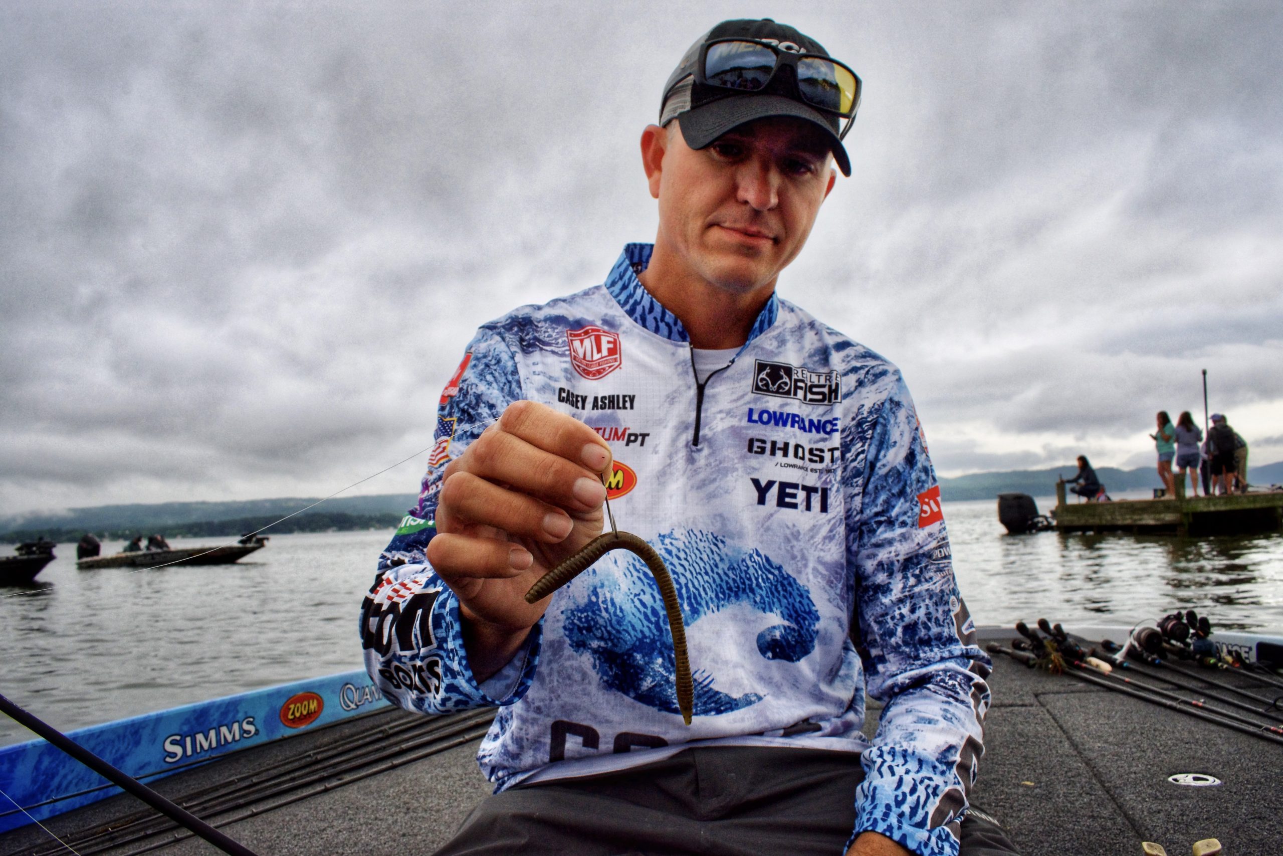 Ashley spent some hours in practice graphing with his Lowrance electronics, but he spent just as much time covering water on his trolling motor looking for bass and bluegill spawning beds. He’d drop a waypoint anytime he would see or spook a quality bass and will revisit those spots throughout the week relying predominantly on a wacky-rigged Zoom Trick Worm, though he plans to keep a topwater honest when the conditions call for it.