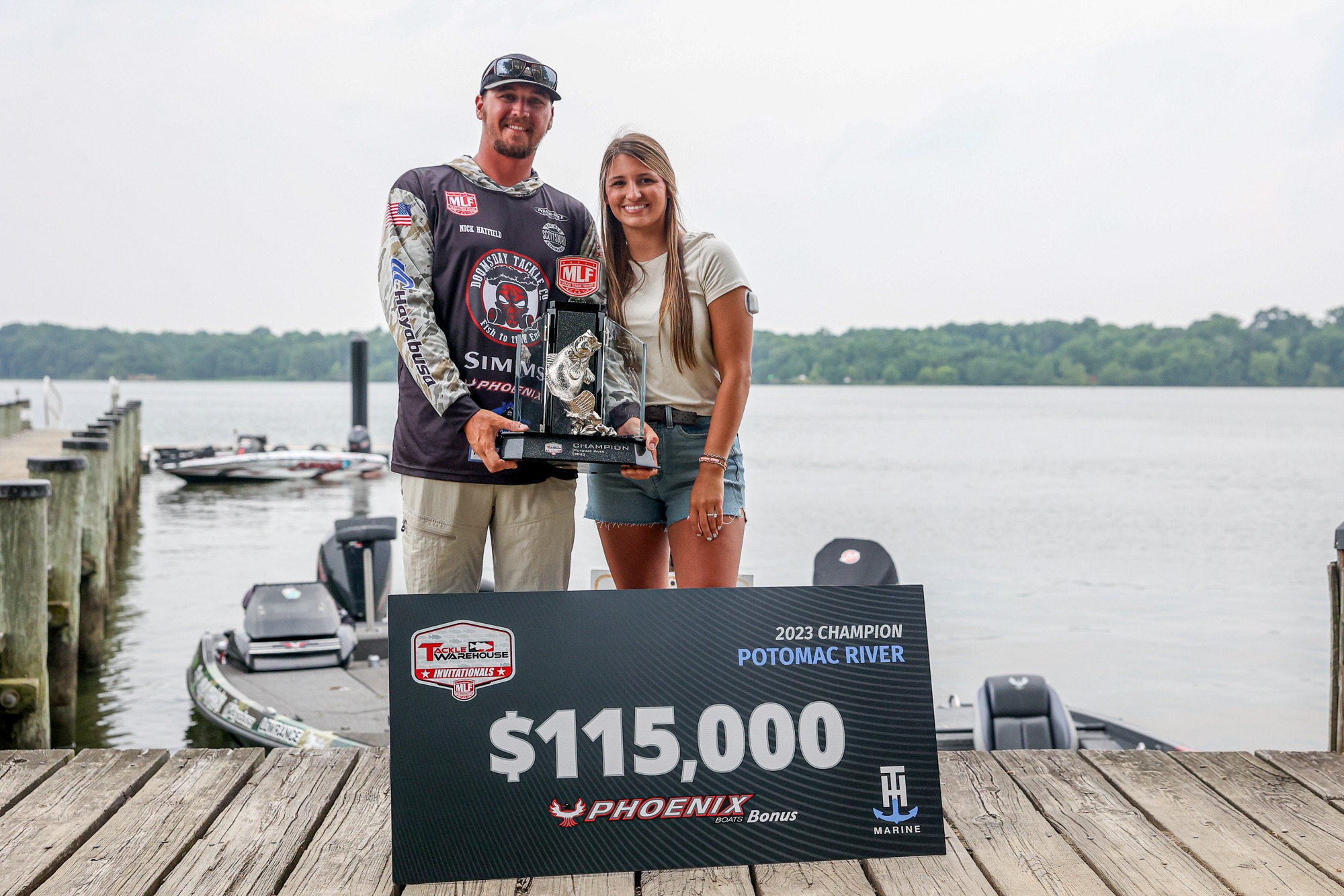 MARBURY, Md. (June 19, 2023) – Pro Nick Hatfield of Greeneville, Tennessee, caught a five-bass limit Monday weighing 20 pounds, 11 ounces – the largest limit weighed throughout the three-day tournament – to win the MLF Tackle Warehouse Invitational T-H Marine Stop 5 at the Potomac River . Hatfield’s three-day total of 15 bass weighing 53 pounds, 12 ounces, earned him the win by a 5-pound, 3-ounce margin over Bass Pro Tour angler Cody Meyer of Star, Idaho, who finished second with a three day total of 15 bass weighing 48-9, good for the $50,000 runner-up payout.