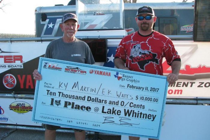 Ky Martin and E.K. Watts weigh 23.37 limit to win Lake Whitney TTZ event and $10,000!
