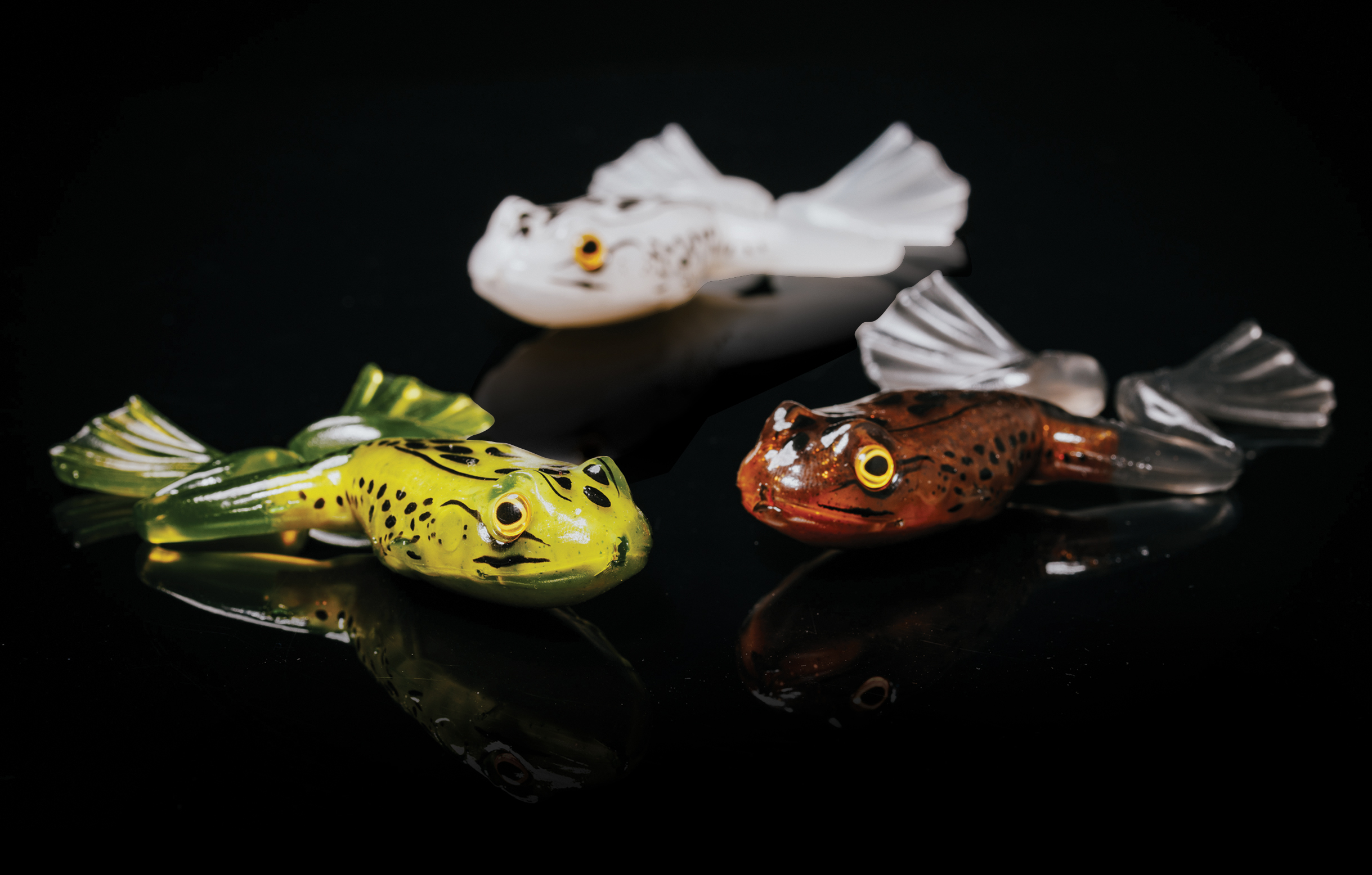 Freestyle Frog remains on the water’s surface. This natural buoyancy enhances the lure’s action at any retrieval speed, with legs that kick and stride with every twitch of the rod tip.