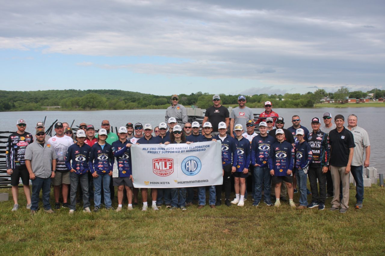 EUFAULA, Okla. (May 8, 2024) – Inclement weather has wreaked havoc across Oklahoma for the past week, but MLF pros and the Oologah-Talala High School Fishing Team managed to put a few hours of sunshine to good use during the Major League Fishing (MLF) Bass Pro Tour MillerTech Stage Four Presented by REDCON1. The MLF Fisheries Management Division (FMD) partnered with the Oklahoma Department of Wildlife Conservation (ODWC) to complete the Minn Kota Habitat Restoration Project supported by Humminbird on Lake Eufaula on Thursday, May 2.