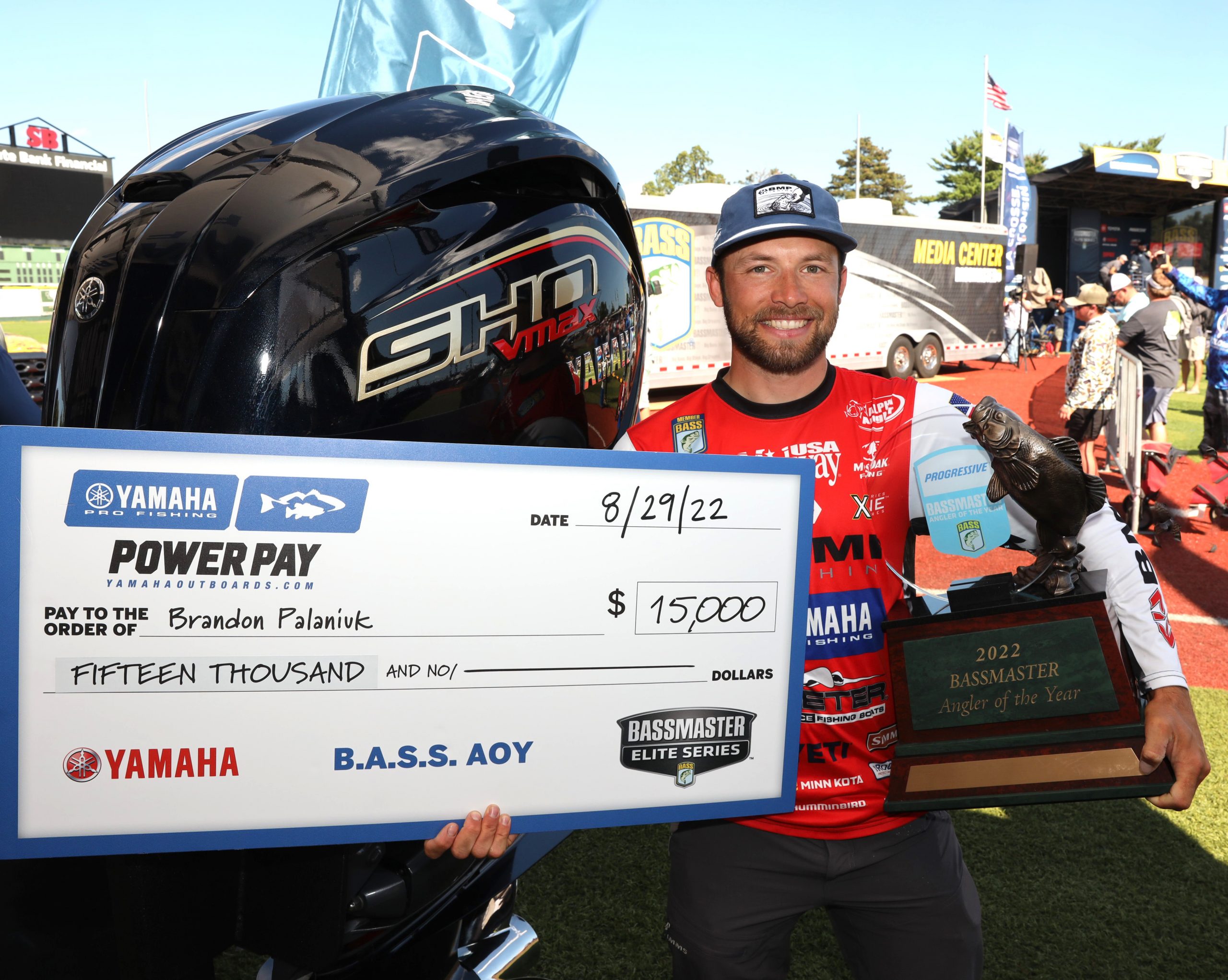 Brandon Palaniuk’s words after receiving a $15,000 Power Pay bonus check from Yamaha for winning the Bassmaster® Angler of the Year title were refreshingly genuine, and he got emotional when asked what his longtime relationship with Yamaha meant to him.