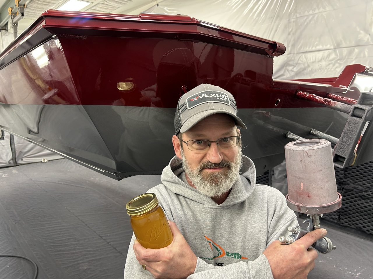 It’s a sticky task, and it’s tough to achieve perfection. But if there’s one man in America you’d want for the job, it’d be Kevin “Donk” Cooper, paint and gel coat supervisor for Vexus Boats.