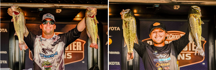 Kyle Patrick of Cooperstown, N.Y., and JT Thompkins of Myrtle Beach, S.C., are tied for the lead after Day 1 of the 2023 St. Croix Bassmaster Open at Lake of the Ozarks with 19 pounds, 15 ounces.