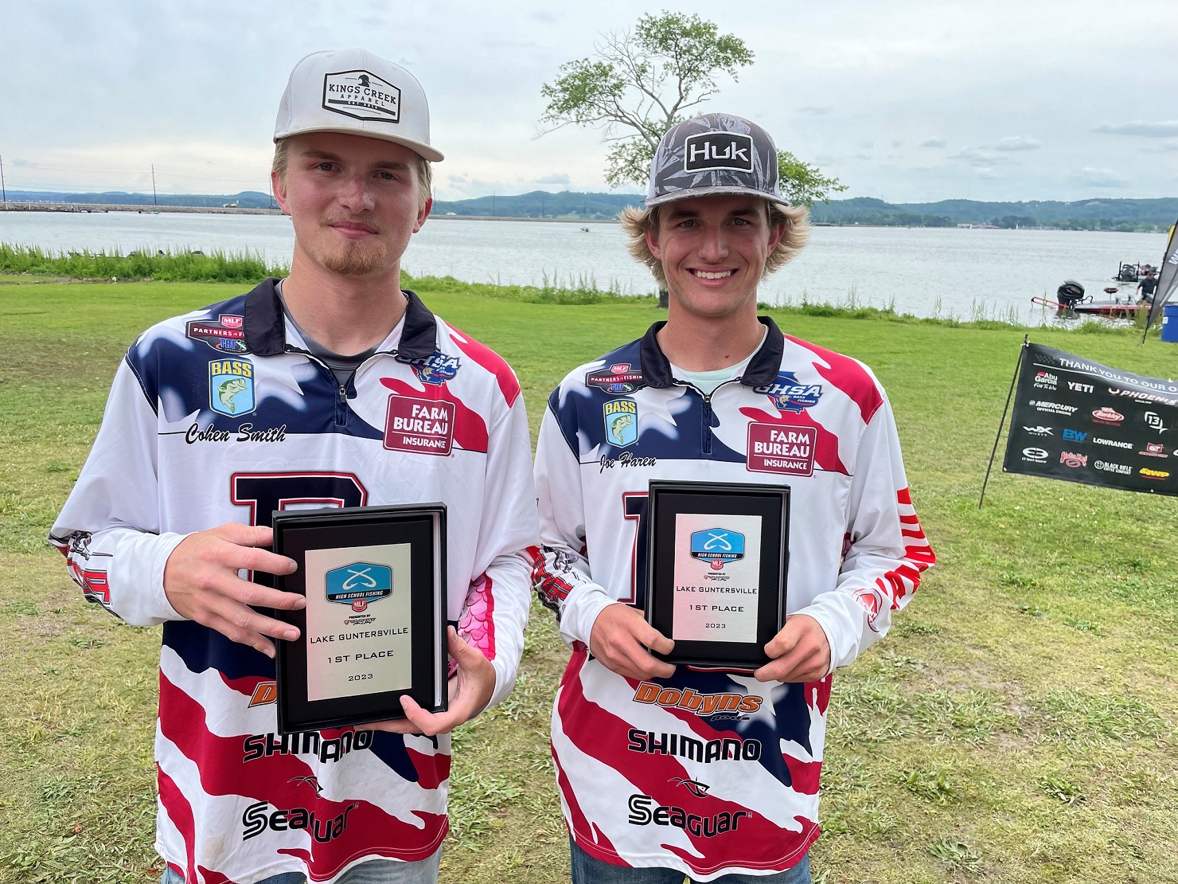 GUNTERSVILLE, Ala. (May 2, 2023) – The Pike County High School team of Joe Haren of Molena, Georgia, and Cohen Smith of Williamson, Georgia, brought five bass to the scale Saturday weighing 20 pounds, 3 ounces, to win the MLF High School Fishing Presented by Favorite Fishing Open on Lake Guntersville in Guntersville, Alabama.