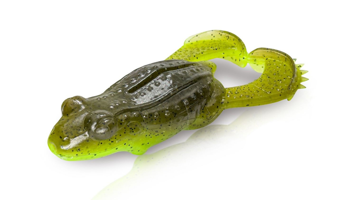 Colors: Green Frog • Albino Flash • Green Pumpkin • Green Pumpkin Chartreuse • June Bug • Black • Tan Frog • Black and Blue Flake