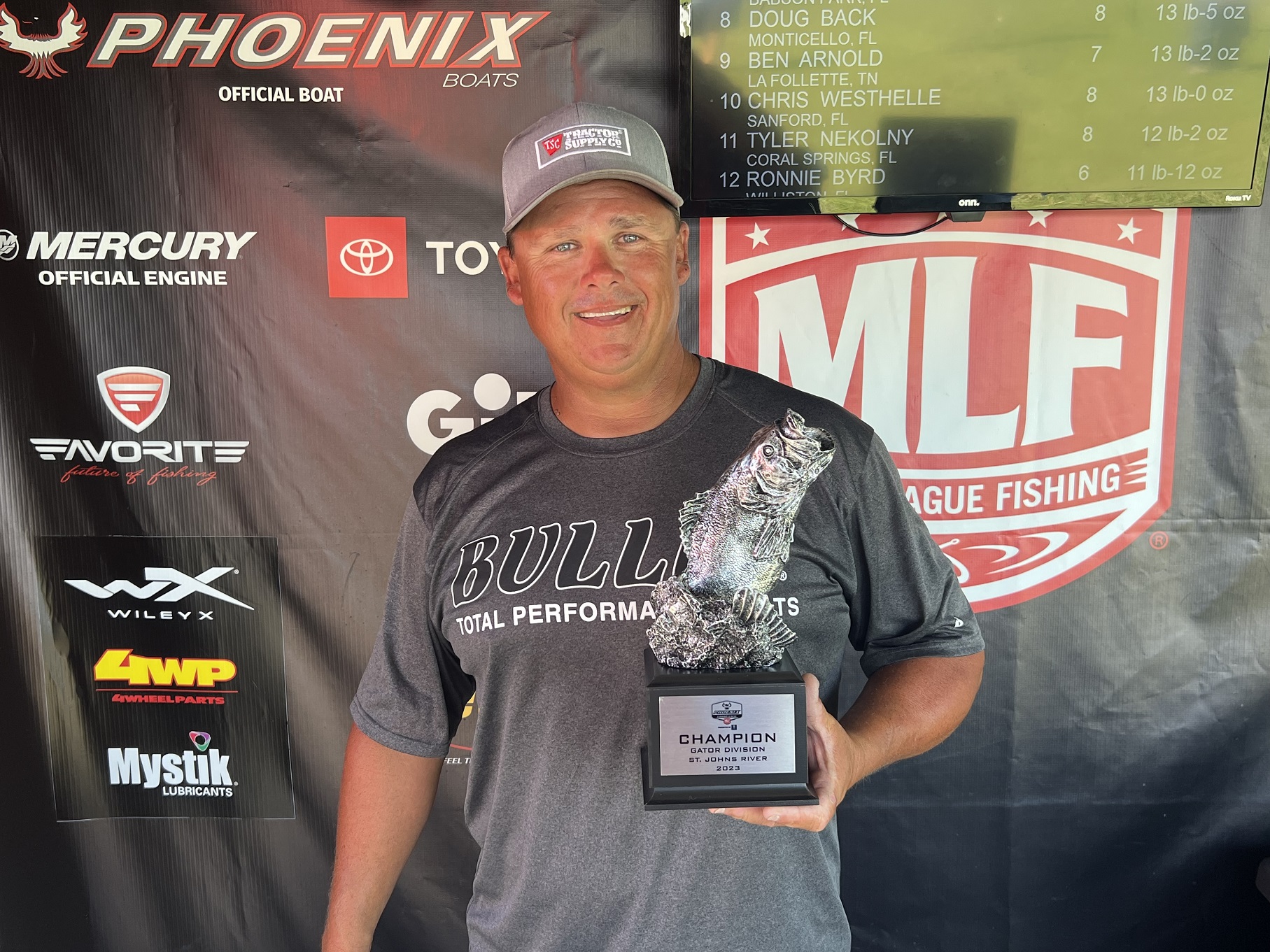 PALATKA, Fla. (Sept. 18, 2023) – Boater Lee Stalvey of Palatka, Florida, caught 10 bass weighing 43 pounds, 6 ounces, to win the two-day MLF Phoenix Bass Fishing League Presented by T-H Marine on the St. Johns River in Palatka, Florida. The tournament, hosted by the Putnam County Tourist Development Council, was the fifth and final regular-season event for the Bass Fishing League Gator Division. Stalvey earned $6,362 for his victory.
