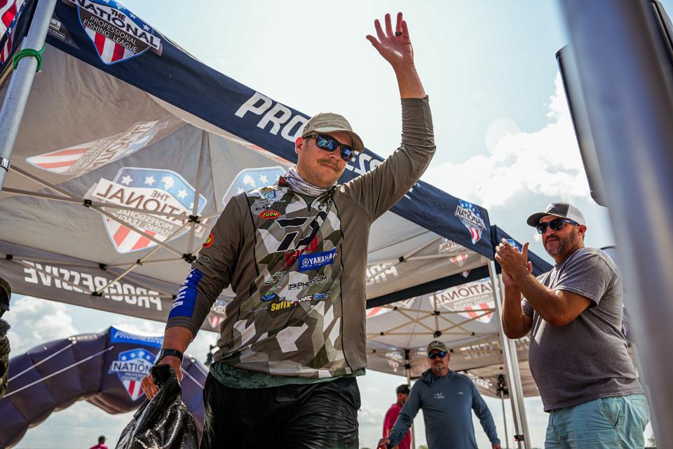 Surviving the wind on day one with 18 pounds, 8 ounces, Trent Palmer added 21 pounds, 10 ounces on day two for a total weight of 40 pounds, 2 ounces, putting him in the second-place spot just under two pounds behind Walters.